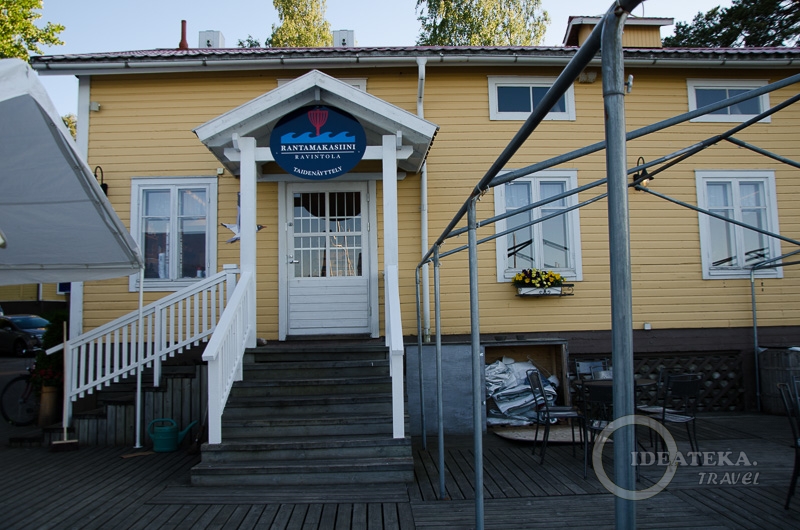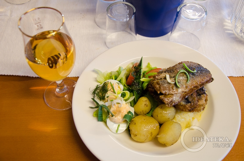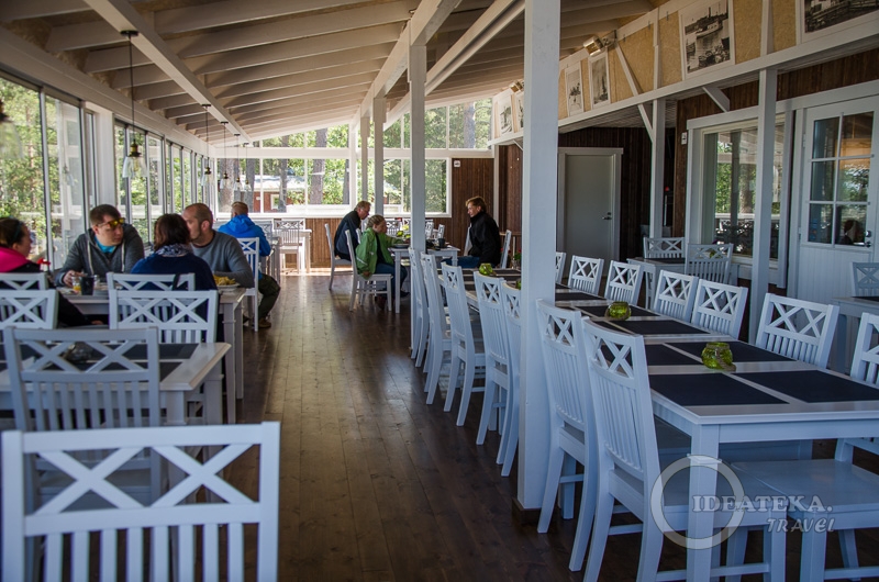 В Меримаску мы приехали уже достаточно потрепанные и были бы рады вообще всему, но то, что нас там ждало в ресторане Ravintola Rantamakasiini — было wow! Приятнейшая терраса, красивейшие виды, прекрасный сухой сидр. А за полчаса приготовилась и вкуснейшая еда!