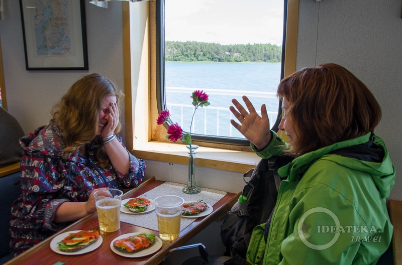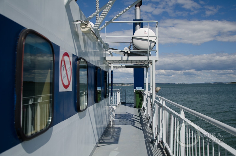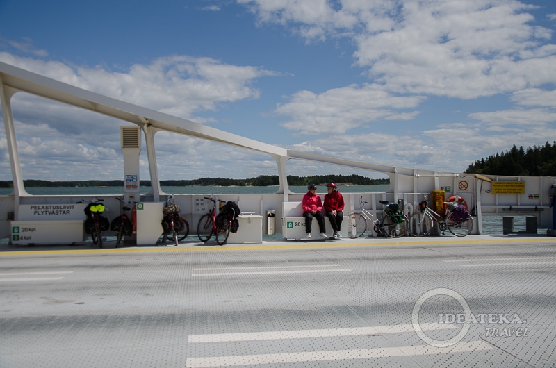 Нас ждал паром Antonia — один из тех, что ходят по расписанию и стоят денег. Нам очень повезло, что это утро не было воскресным, и паром отправлялся в 9 утра. Если бы первый рейс был в 12.15, для нас это было бы полным швахом. Что касается цен, то билет для взрослых в 2017 году стоит 10 евро, провоз велосипеда — 15 евро. Цены и расписание опубликованы на сайте www.finferries.fi.