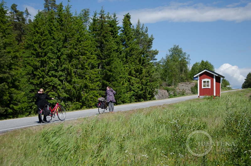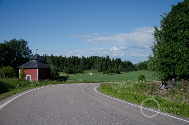 Остановка возле паромной переправы тоже была, но надежды не внушала. Даже если автобус придет, не факт, что он захочет нас брать. А терять время мы уже не могли. Поехали по дороге, выехали на трассу и стали крутить педали в нужном нам направлении, но все-таки с надеждой на автобус. И нам повезло. На одной из остановок мы автобус поймали. И водитель нам попался мировой! Сам загрузил все велосипеды в багажник. Взял что-то около 6 евро за каждый велосипед, но мы были просто счастливы, что автобус сократит нам около 20 км пути по трассе! В местечке Mietoinen мы из автобуса выгрузились — и дальше снова началась пастораль. Но сначала — пикник!