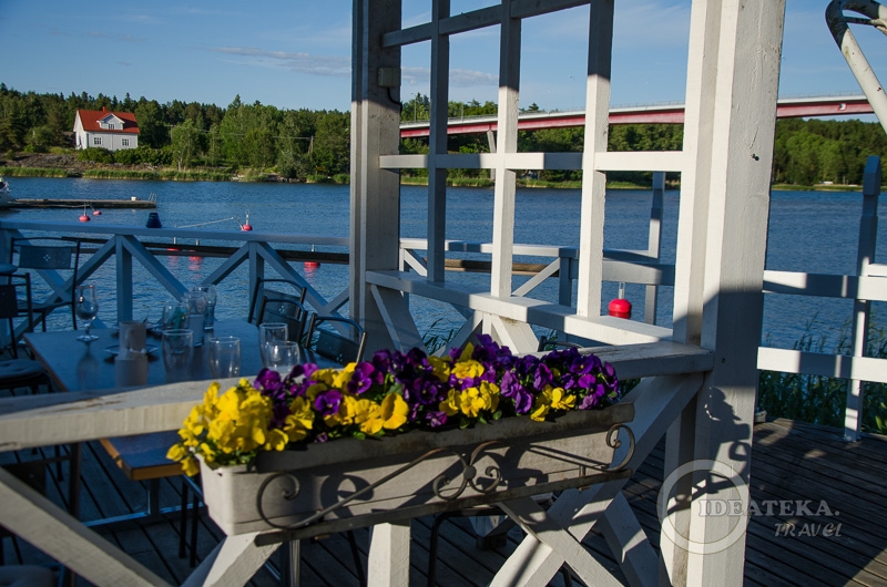 За чашкой сидра обсудили предстоящую важную проблему: как быть с ужином. Домик, куда мы так стремились и куда раньше полуночи уже никак не попадали, был маленький частный и никакой еды нас там не ждало. Полезли в Гугл, позвонили хозяевам и в итоге добыли телефон и адрес чудеснейшей женщины — хозяйки ресторана в Меримаску (Merimasku). Позвонили, убедились, что она нас дождется и накормит. Окрыленные этим известием, мы с нескрываемым рвением взобрались на велосипеды и покатили.