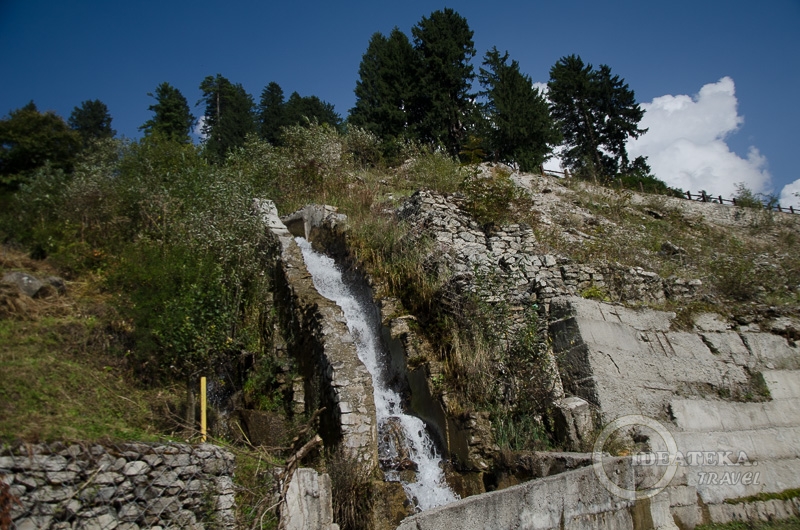 Вдоль дороги встречаются жилые дома, буддийские ступы, рукотворные водопады и технические сооружения для электротанции.