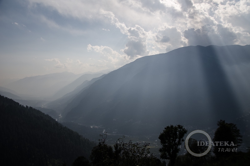А когда мы нагулялись и поехали обратно в Наггар, то с серпантина нам открылся очередной совершенно рериховский закат.